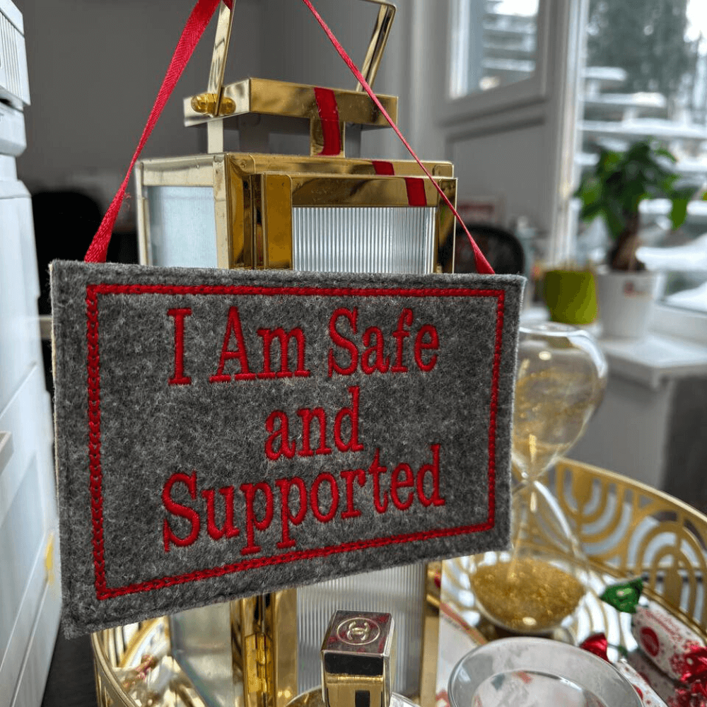I Am Safe and Supported – Embroidered Affirmation Hanging