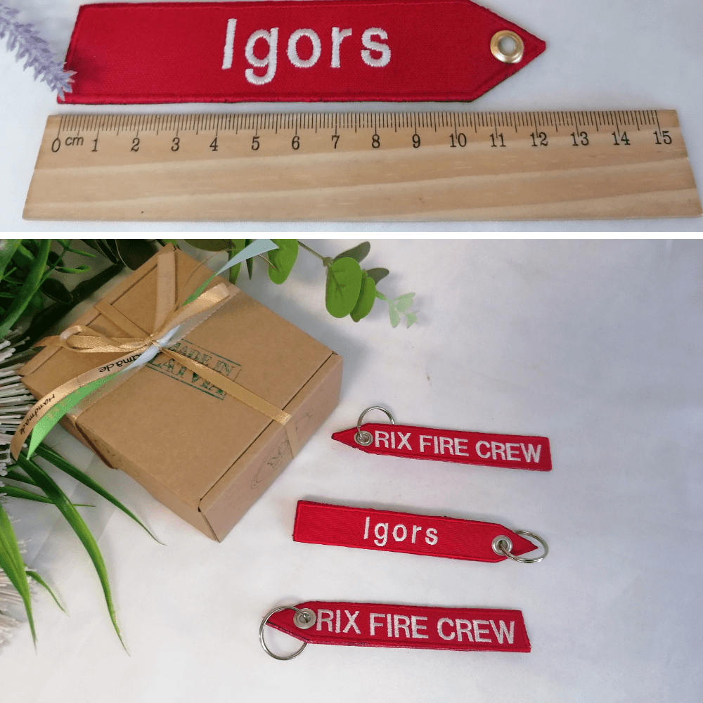 Keychain with embroidered your text. Keychain made with metal ring, this is perfect accessorie for your clothes or accessories. Highlight your style and patriotism!
