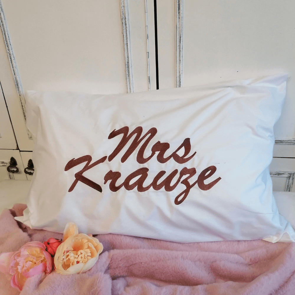 Personalized satin cotton pillow casees with an elegant embroidery.
